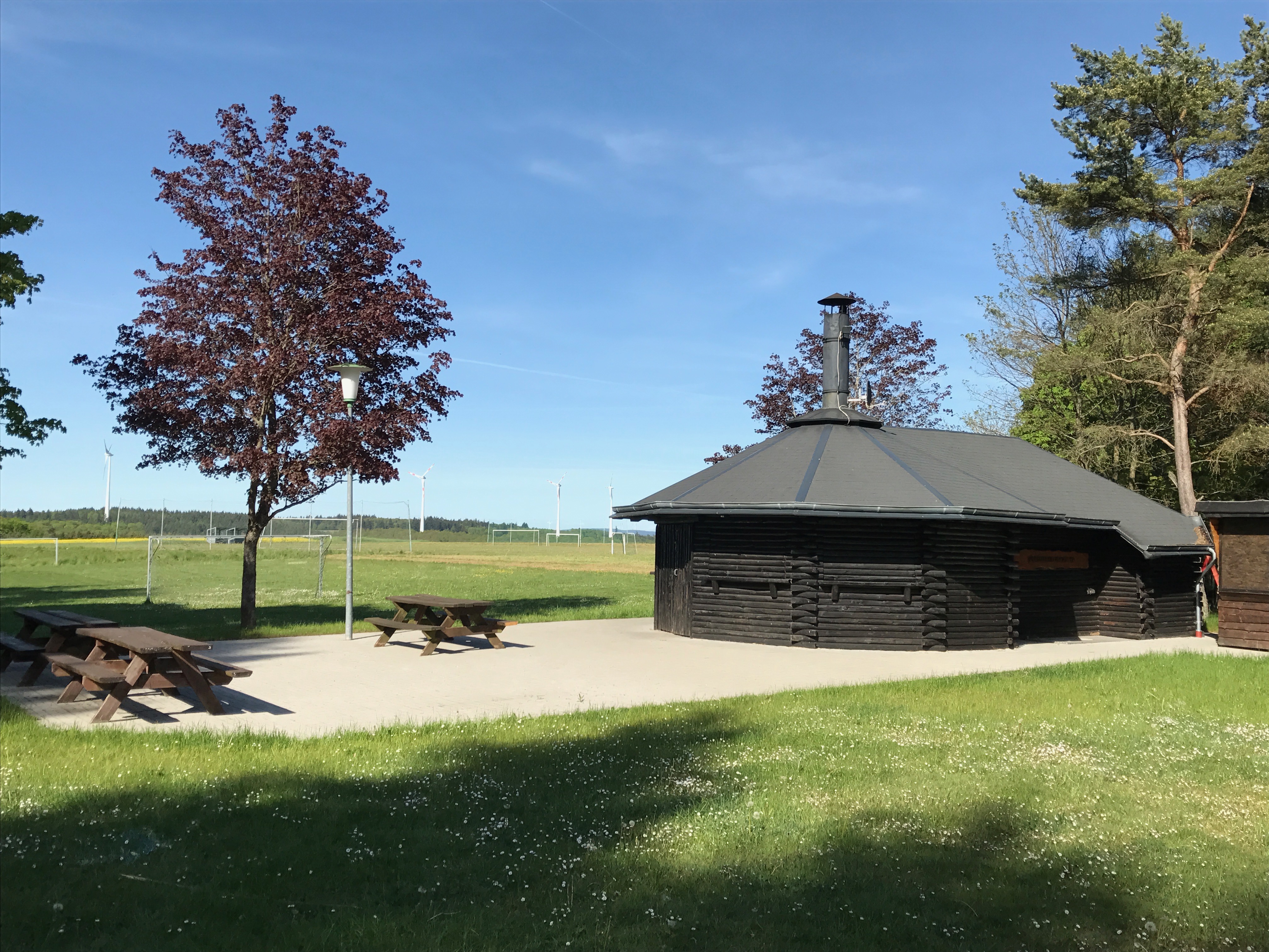 Die weitläufige Wiesenfläche eignet sich gut zum Spielen und Zelten. Ein Volleyballfeld und der angrenzende Bolzplatz erweitern das vielfältige Angebot an Freizeitmöglichkeiten. Auf die kleinsten Hüttenbesucher wartet ein kleiner Spielplatz mit Wipptieren, Sandkasten, Schaukel und Torwand darauf entdeckt zu werden und läd zum spielen und toben ein.